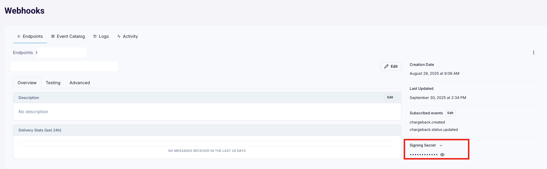 - Go to your webhook endpoint settings